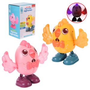 Муз 721-69 Курчатко мікс 2 кольори, світло, звук, пісенька українською, махає крилами, ходить,короб.