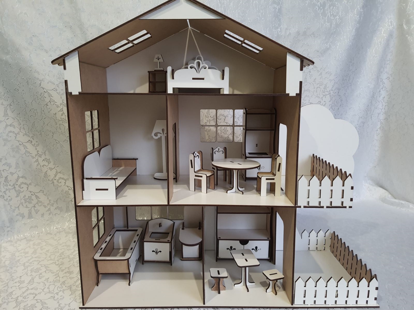 Будинок деревяний для ляльки (Білий) з мансардою та меблями “Tree House” 49*21*50см