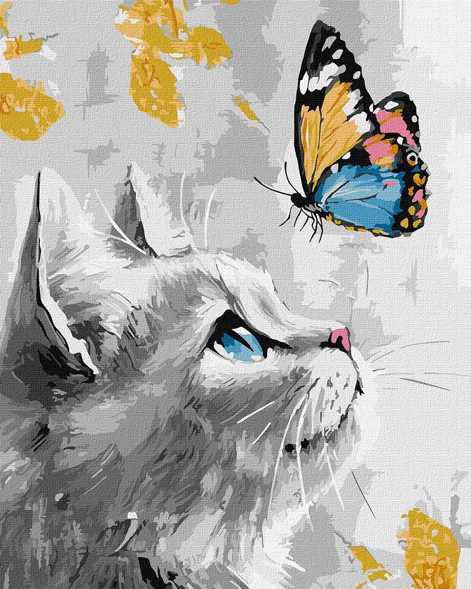 Набір для розпису по номерах “Мрійливе кошеня з фарбами металiк extra” 40х50см