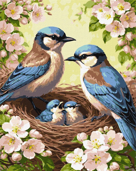 Набір для розпису по номерах “Родина синиць у цвіті” 40х50см