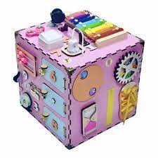 Бізі куб деревяний різнокольоровий 30*30*30см (сірий/рожевий/різнобарвний)
