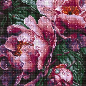 Набір з алмазною мозаїкою “Рожеві півонії під дощем” 40х50см