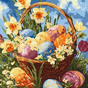 Набір для розпису по номерах “Кошик із писанками та нарцисами” 30х40см