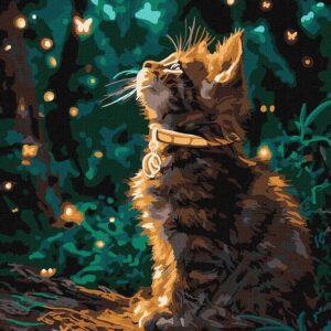 Набір для розпису по номерах “Кошеня та світлячки з фарбами металік extra” 40х50см