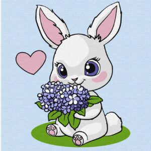 Набір для розпису по номерах для дітей “Зайчик з гортензіями” 25х25см