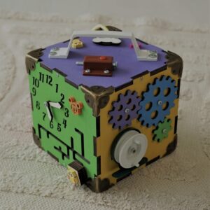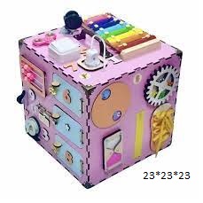 Бізі куб деревяний різнокольоровий 23*23*23см (синій/рожевий/різнобарвний)