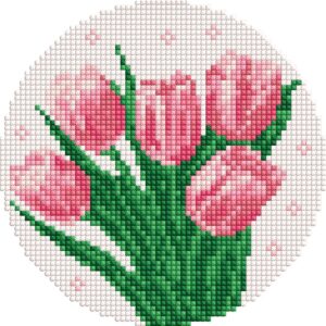 Набір з алмазною мозаїкою “Ніжні тюльпани” на круглому підрамнику d19см