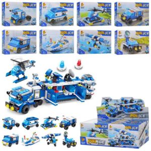 Конструктор 681001 поліція, транспорт в кор.,96предм, 8видів в дисплеї,38,5-18,5-14,5см