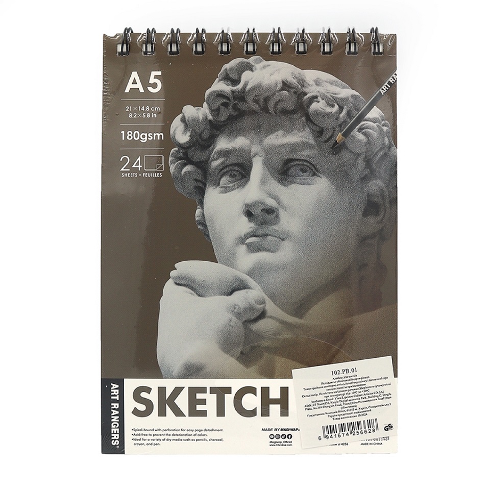 Альбом для ескізів Art Nation SKETCH pad, А5, 24аркуша, 180gsm, на спіралі, 102.PB.01