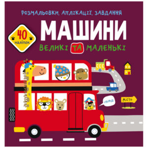Розмальовки, аплікації, завдання. Машини великі та маленькі. 40 наліпок”