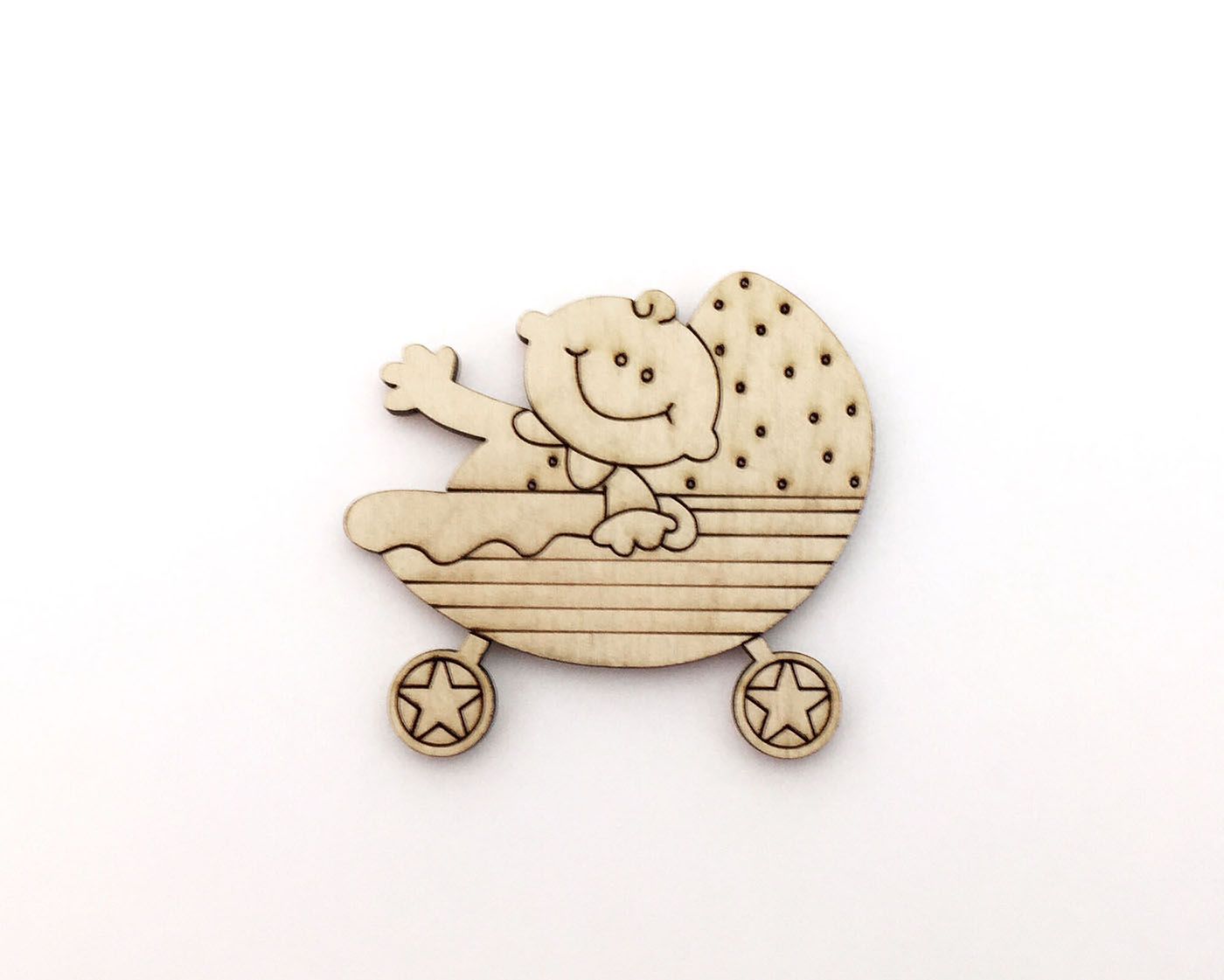 Виріб художній з деревини "Малюк в колясці №1" кількість