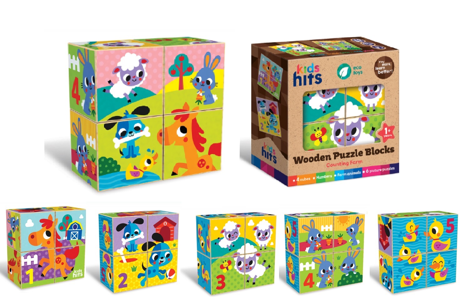 Дерев'яна іграшка 20/022 Kids hits кубик 5,5 см набір 4шт короб.12,8*12,8*5,8 см кількість