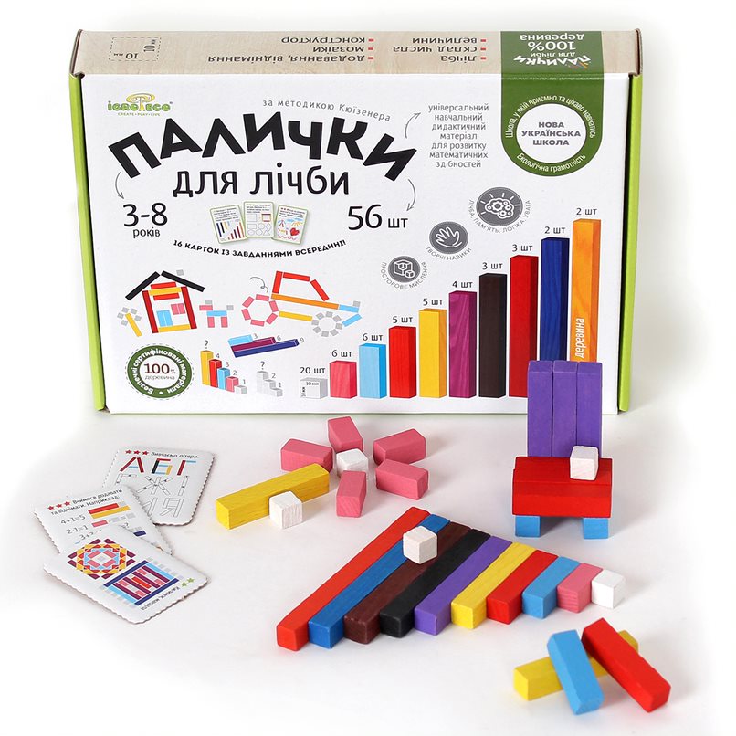 Дер Палички для лічби кольорові 56 шт.(за методикою Кюїзенера) кількість