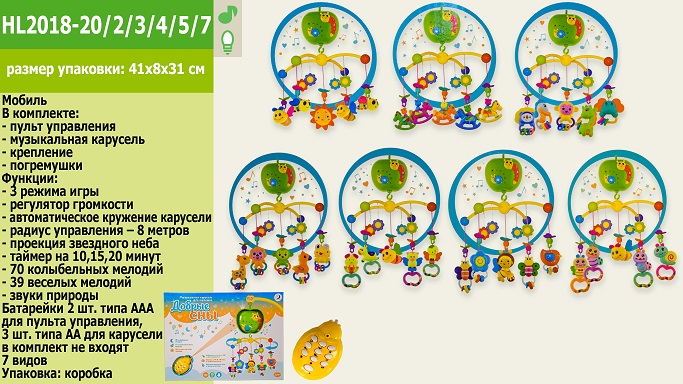 Карусель 2018 Мобіль на пульті д/к н/батар. колискові, звуки природи, проектор, таймер, короб.41*8*31см кількість