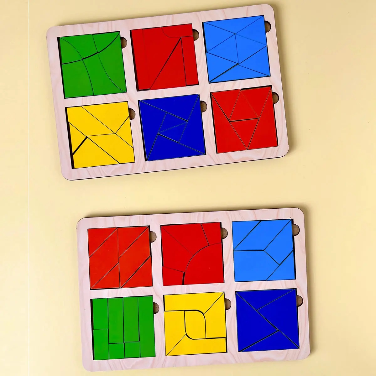 1 рівень – це 2 планшети, на кожному з яких розташовано по 6 квадратів. Квадрати розділені на 1-8 частин різних форм.