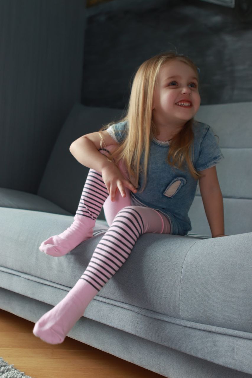 Колготи дитячі Twinsocks 310 рожевий/графіт смужки р-14/86-92