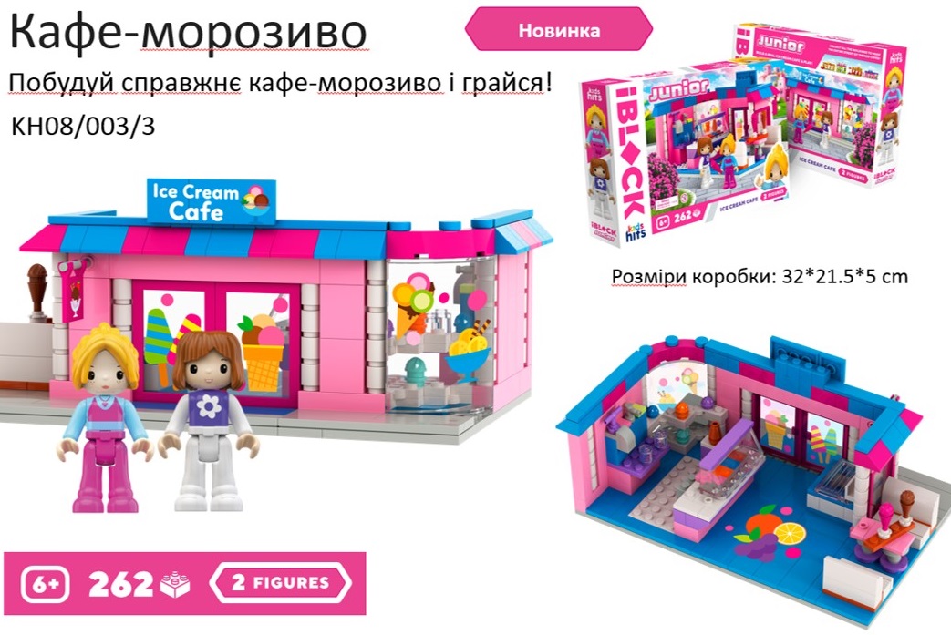 Конструктор 08/003/3 Kids hits IBLOCK JUNIOR Дівчатка, Кафе Морозиво, 262 дет,компл. 2 фігур,короб.