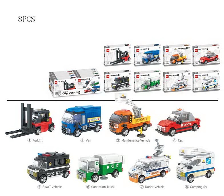 Конструктор 1032 транспорт, 8 видів, в дисплей боксі 37,5*16,8*13,5см кількість