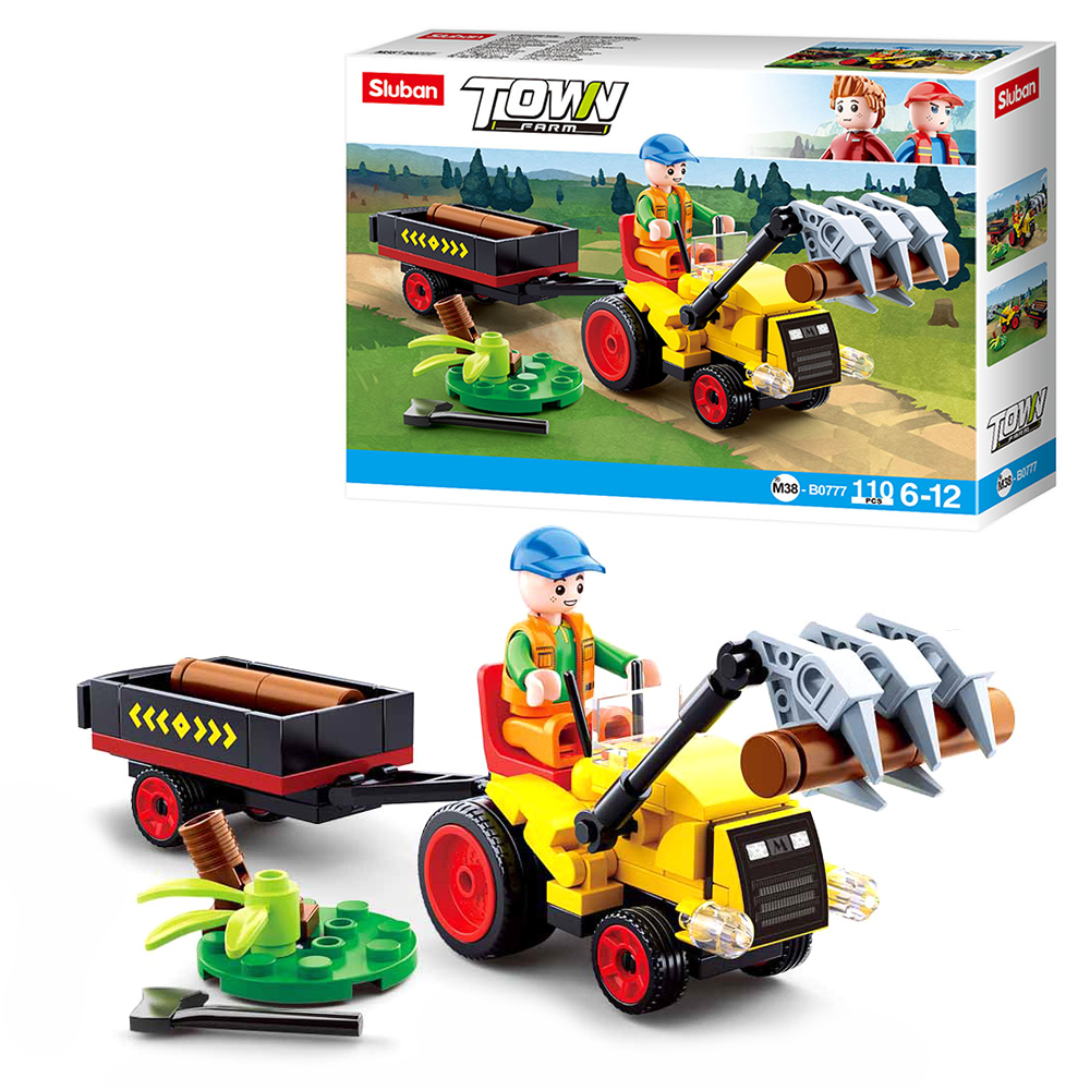 Конструктор 38-0777 SLUBAN трактор з причепом,фігурка,110дет, в кор, 19-14,5-5см