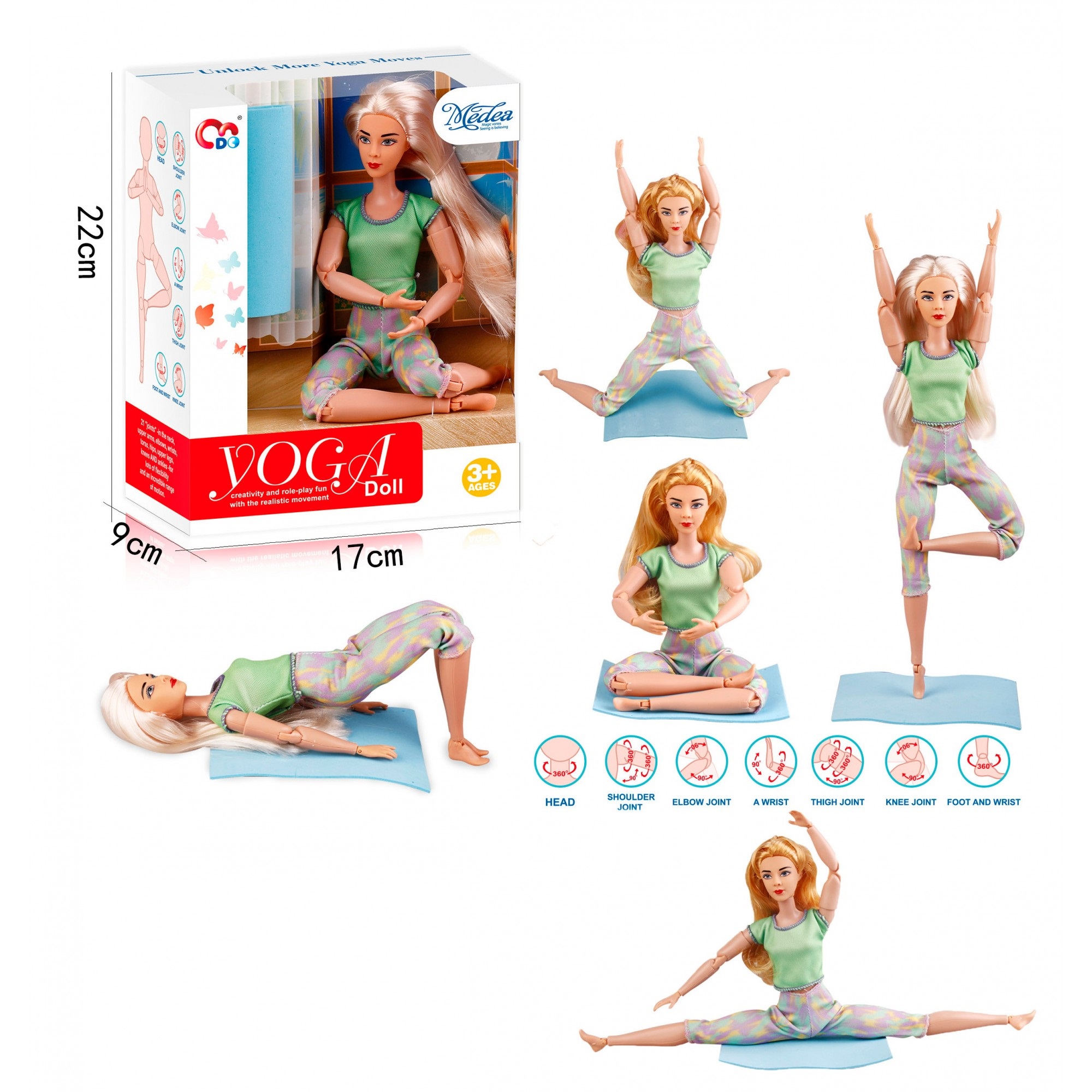 Лялька Йог – це чарівна подруга для вашої маленької принцеси! З висотою 29 сантиметрів, ця шарнірна лялька може обрати будь-яку позу, щоб створити безліч захоплюючих пригод. Її гнучкі шарніри дозволяють ляльці рухатися легко і природно, надаючи безліч можливостей для творчості та гри. За допомогою яскравого й м’якого одягу, який можна знімати й одягати, ваша дитина може створювати нові образи для ляльки щодня! Ця лялька стане ідеальним компаньйоном для розваг удома чи на прогулянках. Вона не тільки розвиває уяву та творчість, а й навчить вашу дитину зберігати йога-ритм та розслабленість. Дозвольте вашій малечі пізнати світ гри й фантазії разом з лялькою.