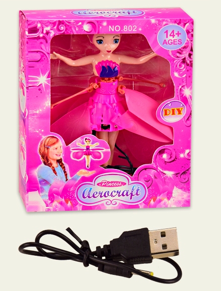 Лялька 802 літаюча фея, 19см, акум, реагує на руку, світло, USBзарядне, в кор