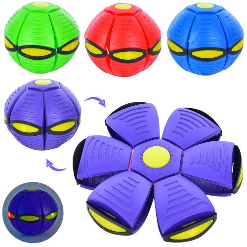 Літаюча тарілка 1002-3 трансформер 22,5 см, м'яч, 4кол, світло, на бат (таб), в кульку 27-26-5см кількість