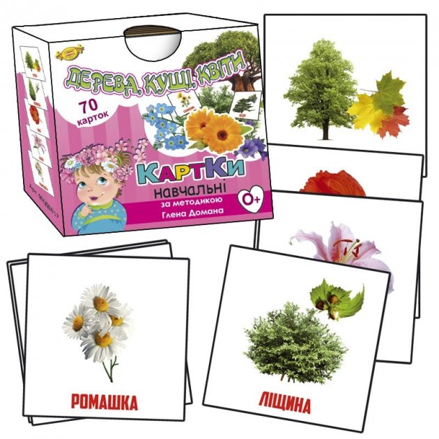 Картки навчальні за метод. Домана Дерева Кущі Квіти 0017 кількість