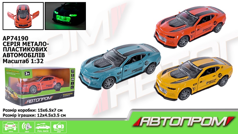 Машина 74190 мет. АВТОПРОМ 1:32,3 кольори, відкр.двері, батар.,світ., звук,короб.15*6,5*7см