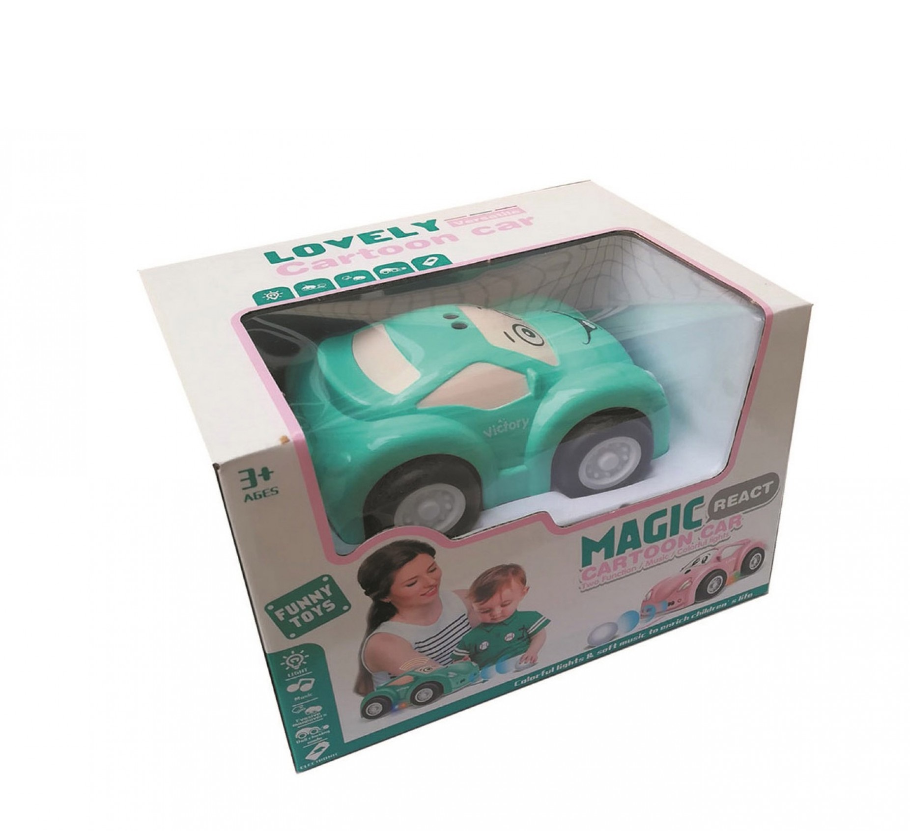 Пластикова машинка, яка працює від батарейок (необхідно придбати додатково 3 шт 1.5 V AAA). Машинка вміє маневрувати та має 2 режими. 1-й режим – машинка тікає від Вас, 2 – режим переслідування м’яча. Також машинка має світлові та звукові ефекти