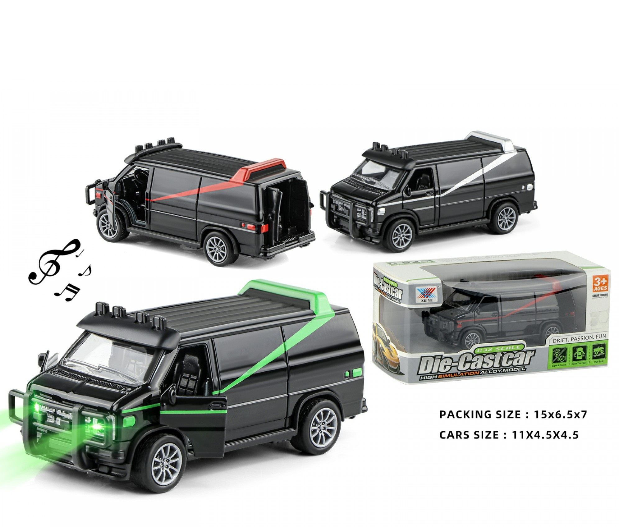 Машинка 1:32 металева інерційна фургон А, світло, звук