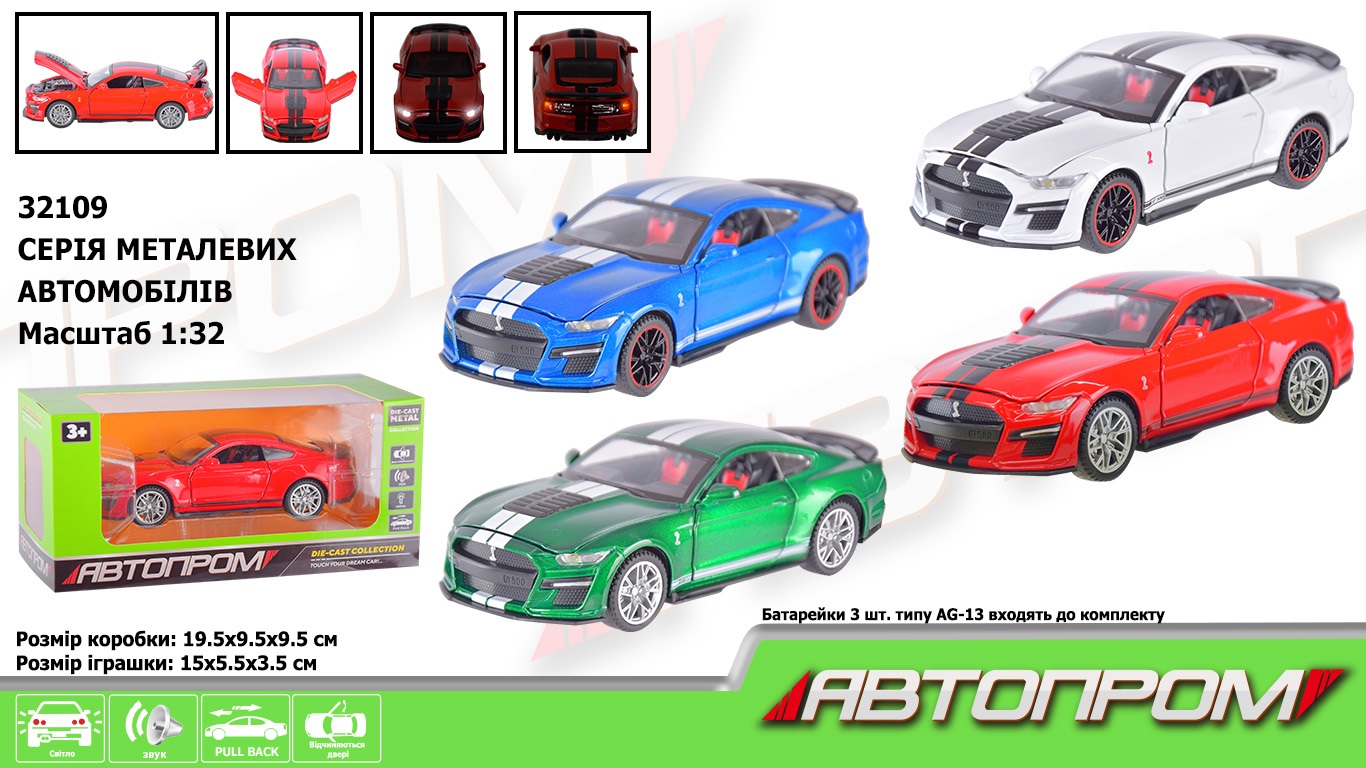 Маш 32109 метал АВТОПРОМ 1:32,4 кольори, бат.., світло, звук, відкр.двері, капіт, багажник, вкороб.1