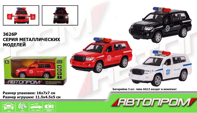 Маш 3626 метал АВТОПРОМ 1:32,3 кольори, світло, звук, відкр.двері, короб.16*7*7см