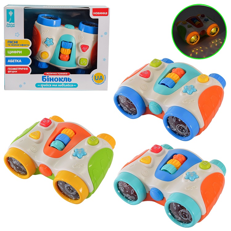 Муз 721-63 Бінокль н/батар., UA вивчення алфавіту, цифри, геометричні. фігури, пісні, звуки, кор.19,9*6,4*15,9см кількість