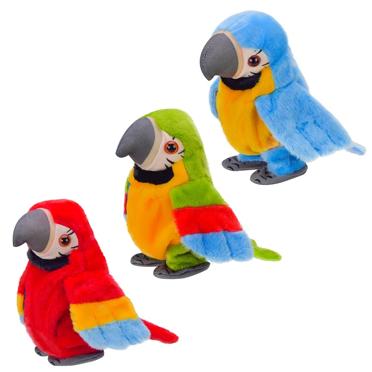 М’яка папуга 14802 повторює голос, ходить, 3 кольори 18см