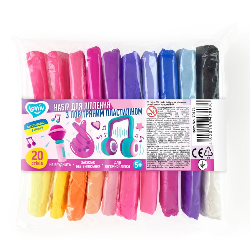 Набір для ліплення з повітряним пластиліном 20 стіків ТМ Lovin кількість