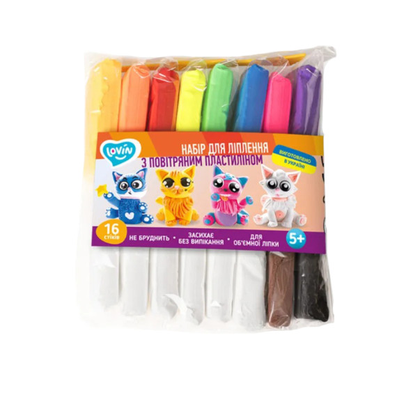 Набір для ліплення з повітряним пластиліном 16 стіків ТМ Lovin кількість