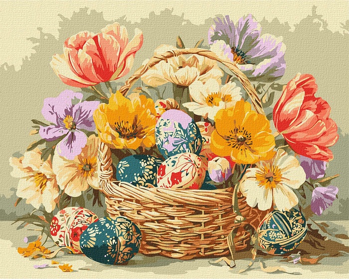 Набір для розпису по номерах “Великодній кошик з квітами” 40х50см