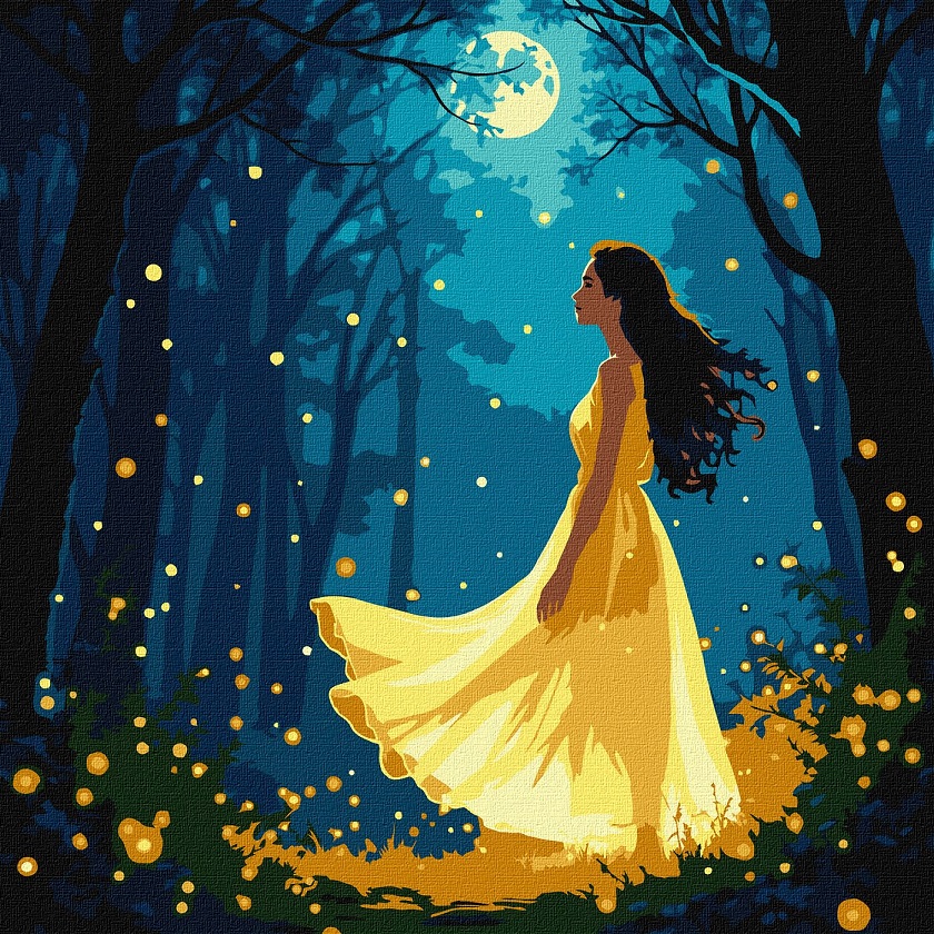 Набір для розпису по номерах “Дівчина серед світлячків з фарбами металiк extra” 30х30см