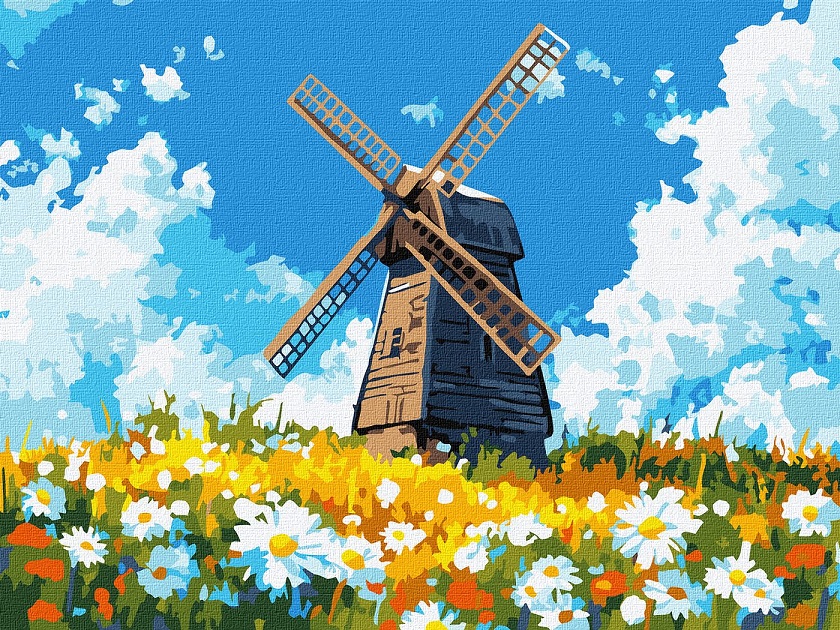 Набір для розпису по номерах “Млин посеред поля” 30×40см