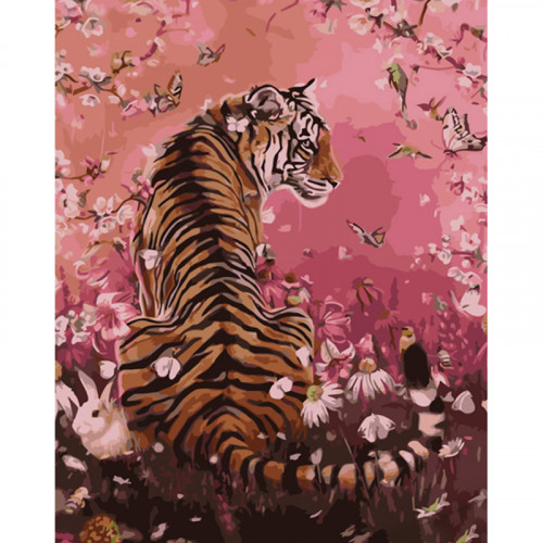 Набір для розпису по номерах Тигр на рожевому фоні Strateg розміром 40х50 см (GS918)