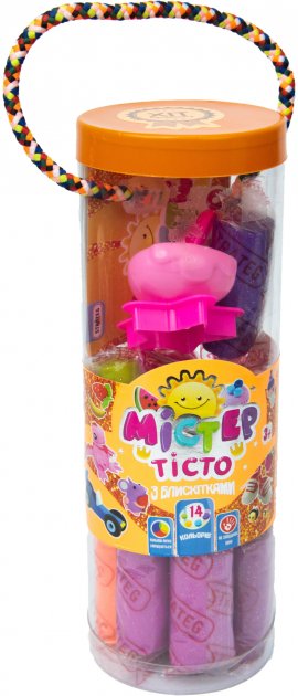Набір тіста для ліпки 71802 Містер тісто 14 кольорів з блискітками у блістері 7-20см кількість