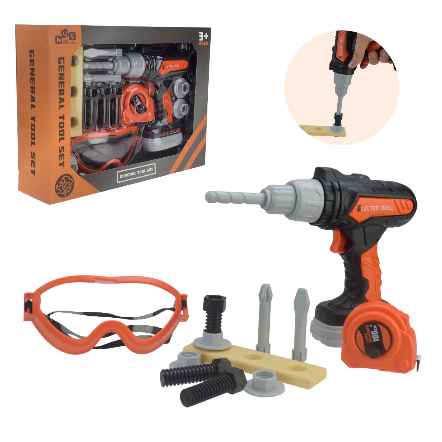 Набір інструментів 778-18 н/батар. звук, 13 елементіві, шуруповерт,захисні окуляри, рулетка короб. 3