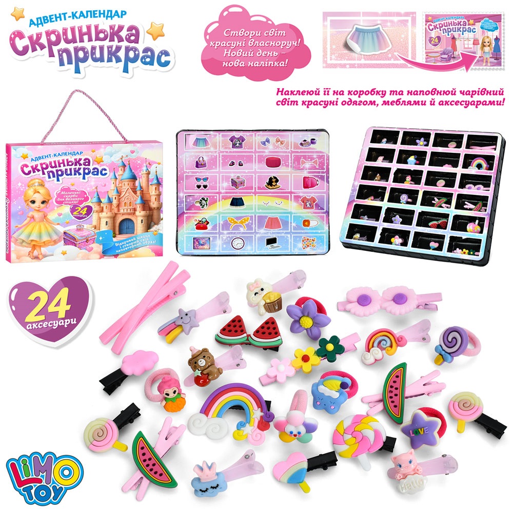 Набір 001 Скринька прикрас, адвент-календар, набір-сюрприз, набір заколок, резинки, 24пр, в кор, 31-