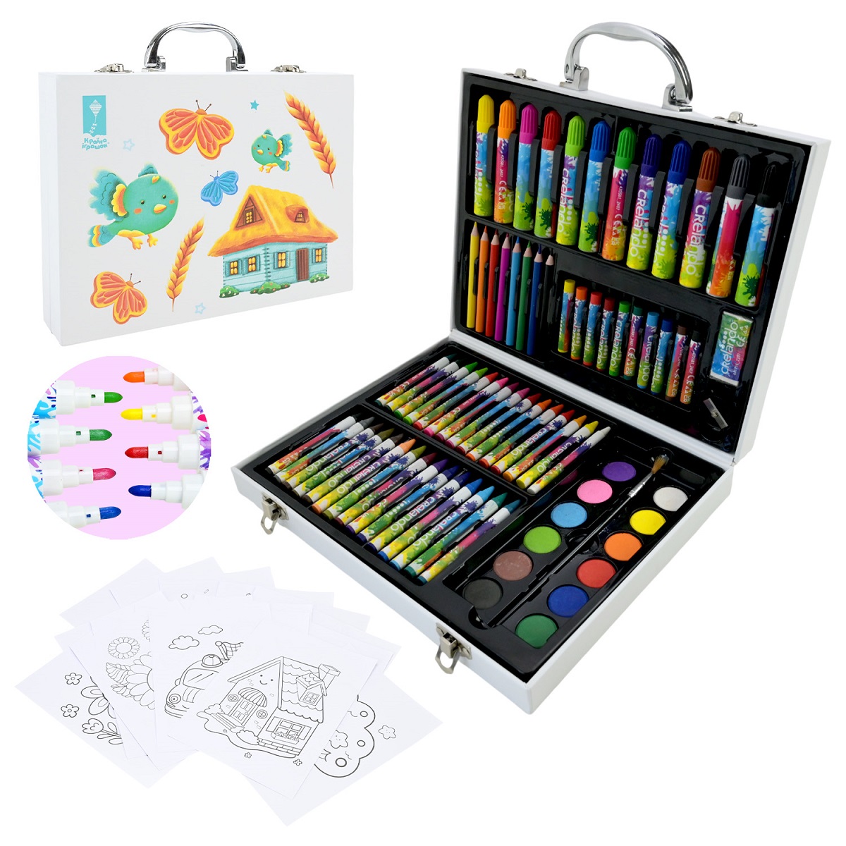 Набір 725-36 для творчого малювання 75 предметів,крейда,акварельні фарби,фломастери,18 аркушів розма