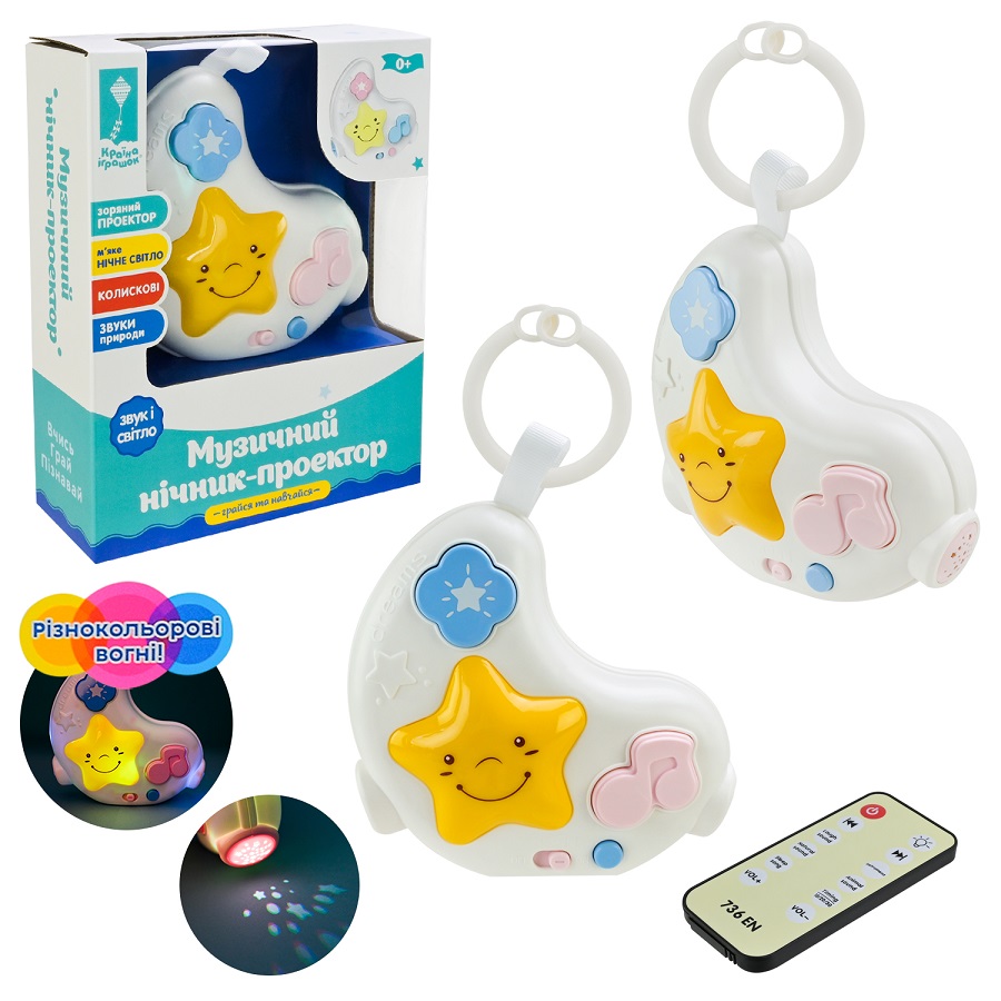 Нічник 724-07 “Грайся та навчайся “, з пультом керування, проектор зоряне небо,муз., короб. 17,5*6,5*21см