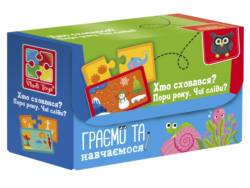 Пазли “Знайди пару. Пори року. Чиї сліди? Хто заховався” VT5003-04 (укр)