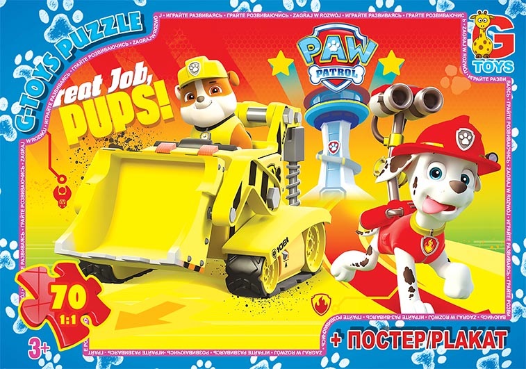 Пазли ТМ "G-Toys" із серії "Paw Patrol" (Цуценячий патруль), 70 ел. PW0849 кількість