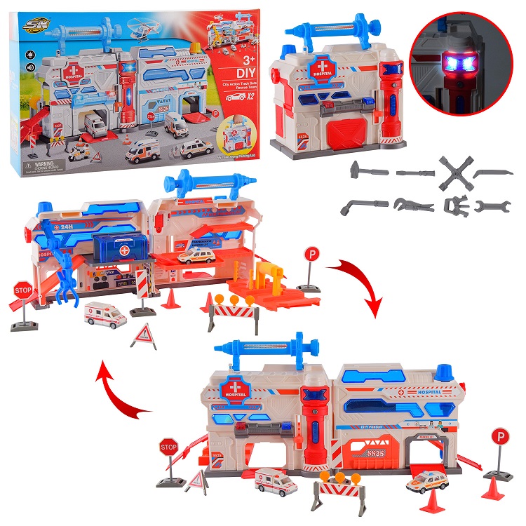 Паркінг 599 HA н/батар. пластик + метал,2 машинки у комплекті, світло,звук, короб. 43,5*12,5*28см