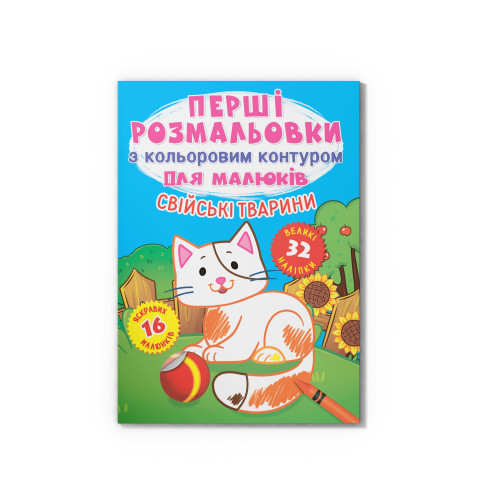 Перші розмальовки з кольоровим контуром для малюків. Свійські тварини.32великі наліпки(9789669873262