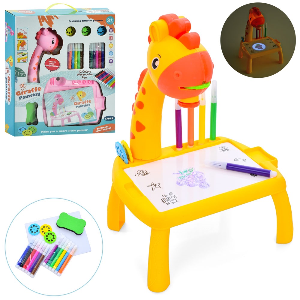 Проектор 222-10 жираф, 20-15,5-в28см, світло, слайди, фломастери, губка, 2 кольори, на бат, в кор